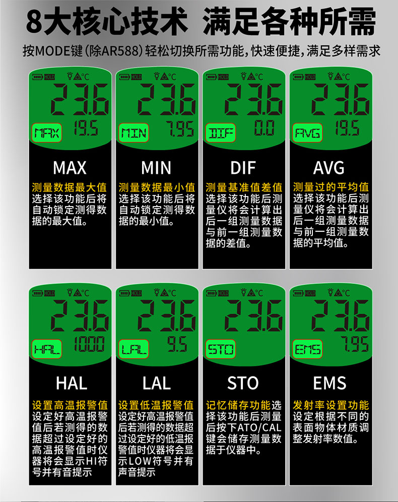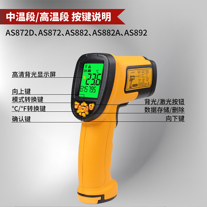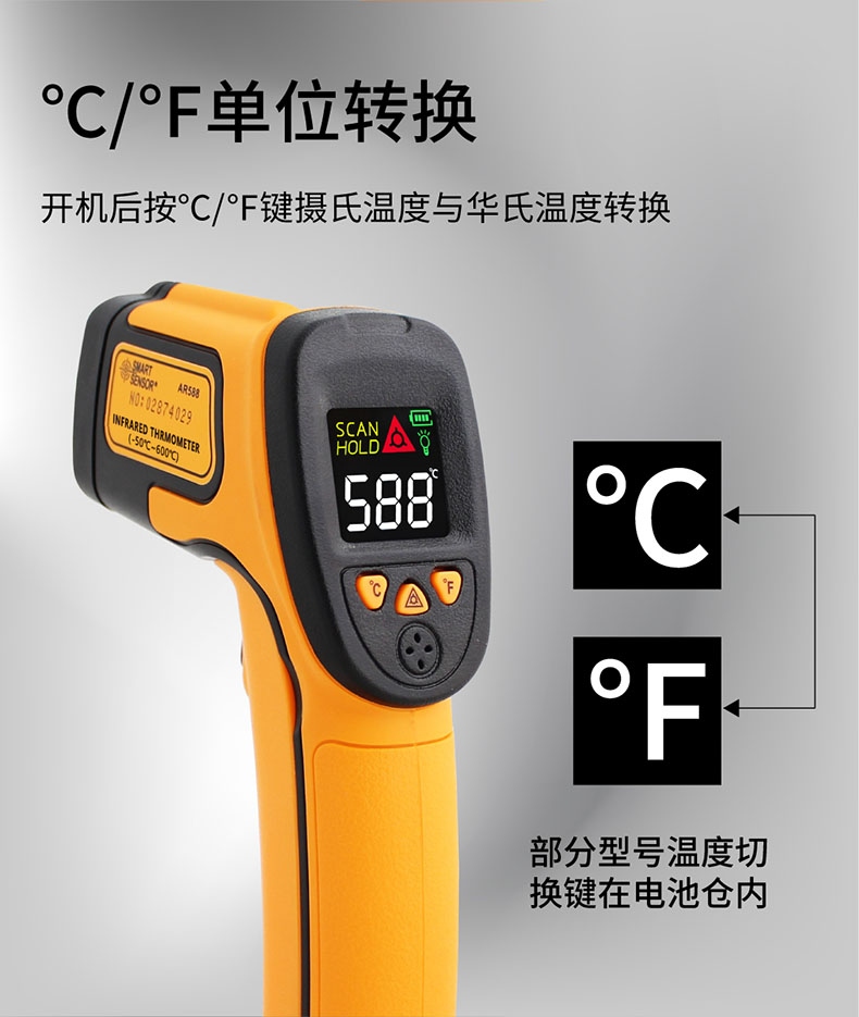 希玛 TM590+红外线测温仪工业高精度手持点温枪高温电子温度计烘焙油温计
